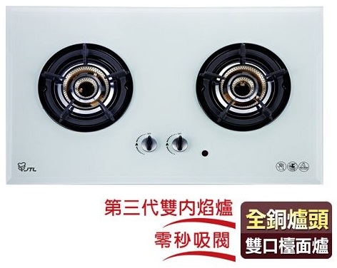 喜特麗 雙口玻璃檯面爐(內焰式) JT-2208A (黑/白)