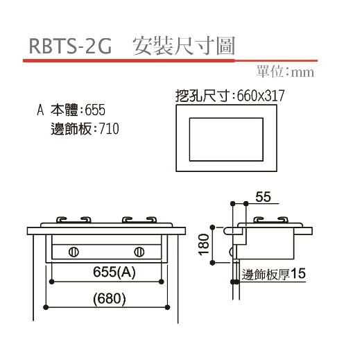 Rinnai 林內瓦斯爐 一般嵌入爐RBTS-222 (S)不鏽鋼 (W)琺瑯