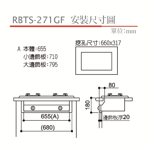 Rinnai 林內瓦斯爐 一般嵌入爐RBTS-222 (S)不鏽鋼 (W)琺瑯