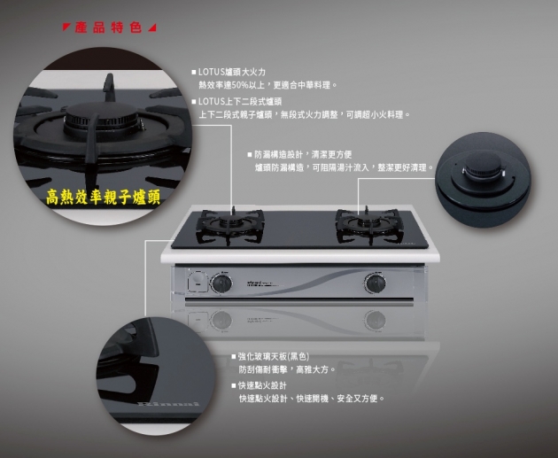 Rinnai 林內瓦斯爐 檯面式LOTUS二口爐RB-27GF (黑)玻璃