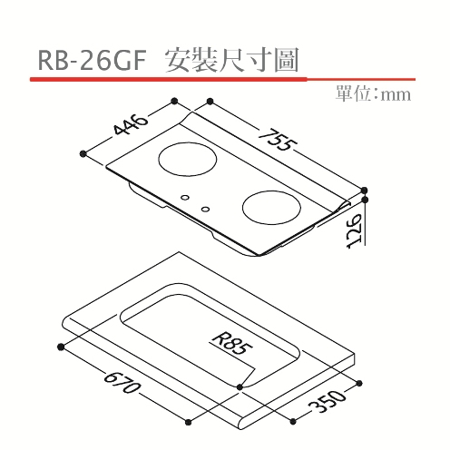 Rinnai 林內瓦斯爐 檯面式LOTUS二口爐 RB-26GF(黑)玻璃