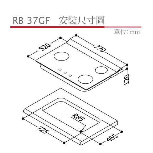 Rinnai 林內瓦斯爐 檯面式美食家三口爐RB-3GMB (B)黑玻璃 (W)白玻璃