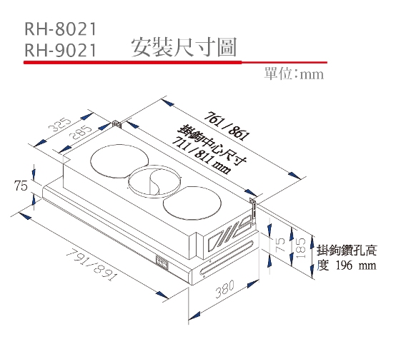 Rinnai 林內一般型排油煙機 RH-7176 / 8176 / 9176 S:SUS#430 K:白色烤漆