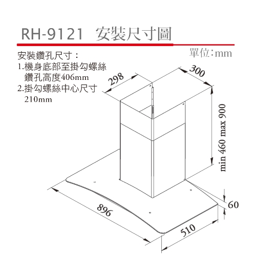 Rinnai 林內一般型排油煙機 RH-7176 / 8176 / 9176 S:SUS#430 K:白色烤漆