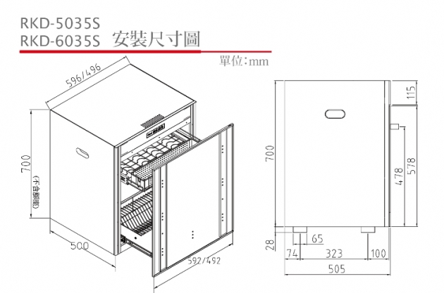Rinnai 林內嵌門式烘碗機 RKD-5035S / 6035S