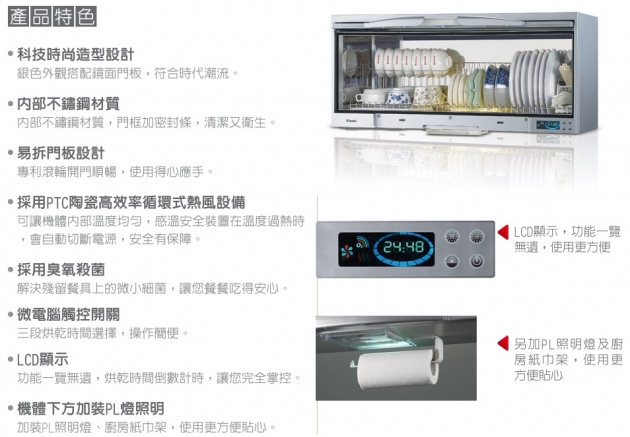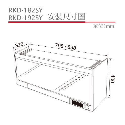 Rinnai 林內懸掛式烘碗機(LED按鍵) RKD-360 / 380 / 390 系列 S型號:臭氧殺菌